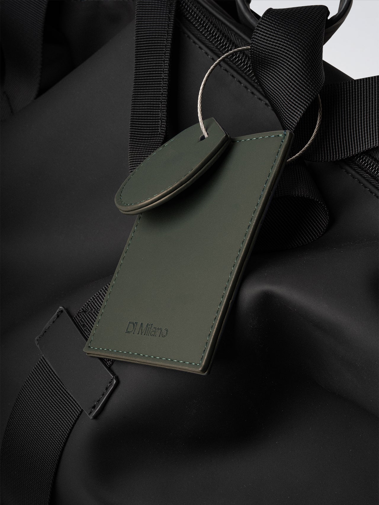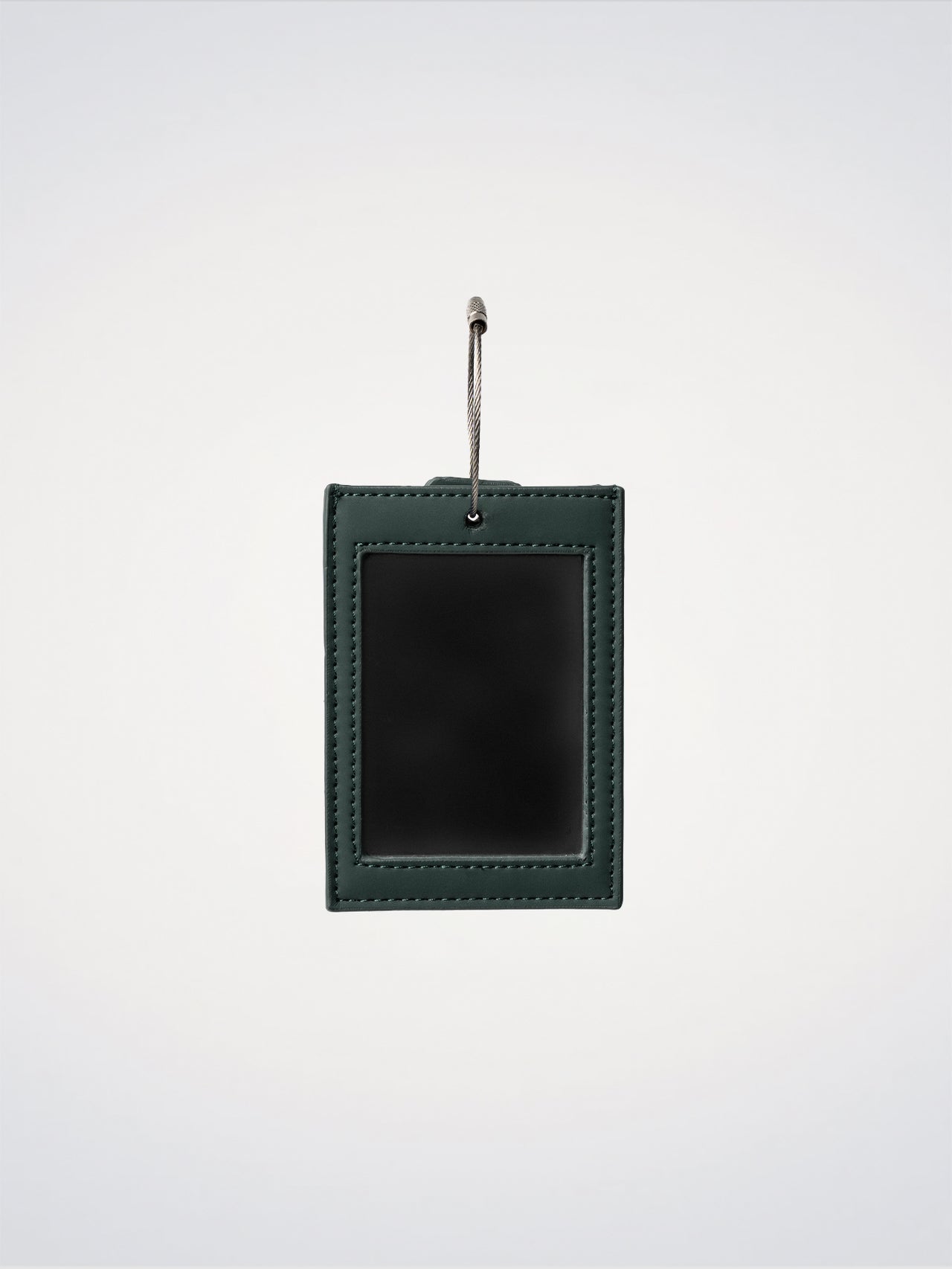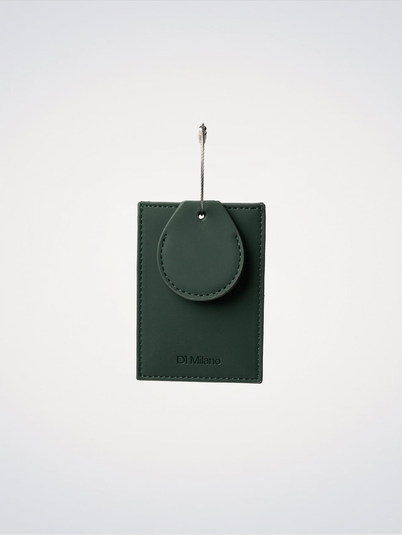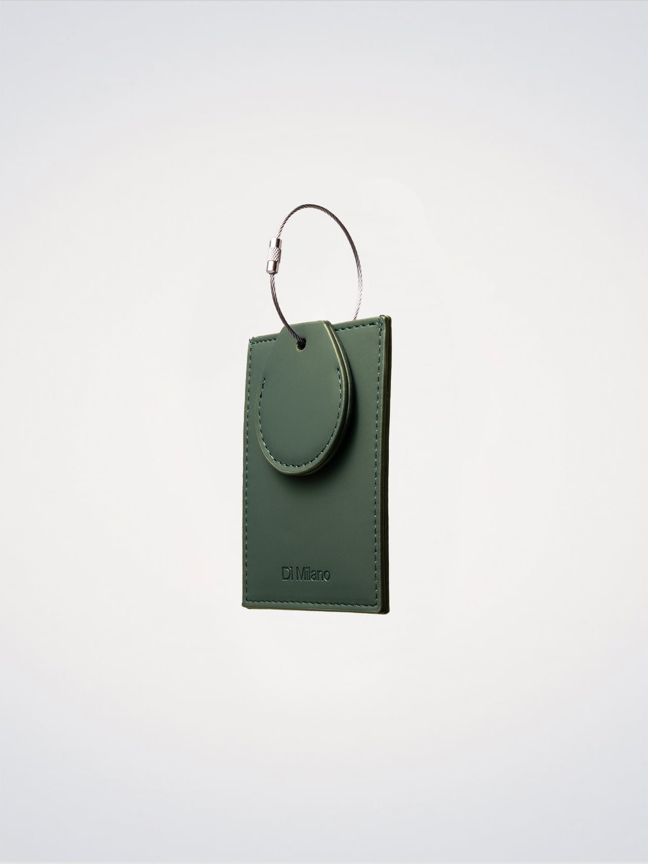 The Travel Tag in green polyurethane combines functionality and design. It features a dedicated slot to insert your address and contact details while traveling, along with a practical compartment designed to hold an AirTag. The minimal design is finished with an embossed logo and a silver steel screw closure, ensuring easy and secure fastening to your luggage.